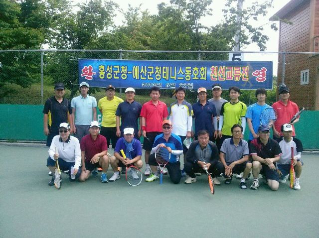 홍성군청ㆍ예산군청 테니스동호회 회원 40명은 지난 22일 홍주종합경기장 테니스코트에서 양군 선수들의 화합과 단결을 다지는 친선경기를 열었다.