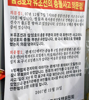 단순한 사고였다면 상처는 덜 할 것이다. 아니 일상에서 일어날 수 있는 것이라고 생각하며 정부당국과 사고 당사자인 삼성호에 대한 마음이 편할 것이다. 그러나 문제는 사고가 단순한 것이냐, 의도적이냐 하는 것이다.