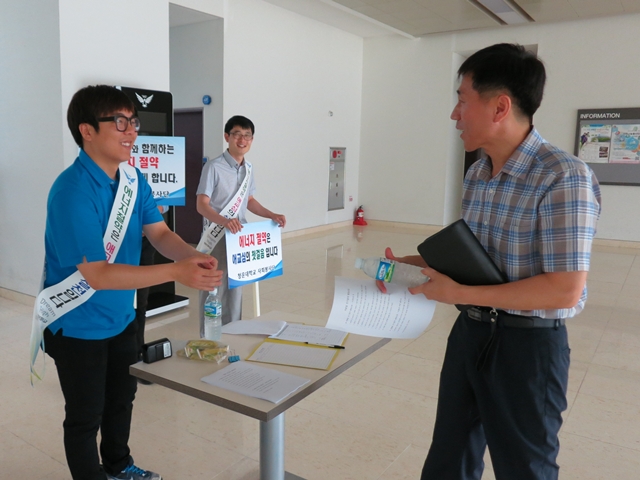 이번 캠페인을 통해 청운대학교 구성원은 △실내온도 26℃이상 유지 △‘캠퍼스 블랙아웃 타임’ 실시 △저층 계단이용하기 △장시간 미사용 시 컴퓨터 끄기 등 생활 속에 에너지절약을 실천하기 위한 서약서도 작성했다.