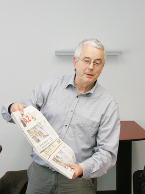 현재 베펠리쉐 룬트샤우(Westfaelische Rundschau)에서 기자들이 파업을 하고 있다. 원인은 무엇인가? 베스트펠리쉐 룬트샤우는 한때 120명의 기자가 신문을 만들었다. 그러나 채산성이 없어서 지금은 계속 기자수를 줄였고, 이제 5명의 기자만 남기고, 지역기사를 아예 경쟁사로부터 받아서 제작하겠다는 다른 모델을 도입했다. 조금 복잡한 문제이다. 기자로서 참담함을 느낀다. 하지만 경영주 입장에서는 더 이상 독자가 없는 신문을 유지하기 위해서는 투자하지 않는다. 한없이 투자할 수 없다는 판단인 듯하다.