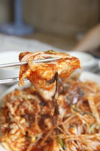 김가네 볼태기를 찾는 사람들 사이에 가장 인기를 끄는 것은 볼태기찜. 대구머리를 콩나물과 함께 벌겋게 버무려서 낸다. 미나리와 미더덕 향이 은은하게 나고 청양고추의 알싸한 맛이 그대로 살아 있다.