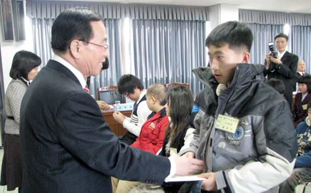 충청남도교육청(교육감 오제직)은 지난 31일 홍성교육청을 방문해 홍성관내 저소득층 및 투병 중에 있는 학생을 초청하여 2007 사랑의 수호천사 성금(생계비 100명, 의료비3명) 5,300만원을 전달하고 이들에게 꿈과 희망을 잃지 않도록 격려하는 등 뜻 깊은 시간을 가졌다.