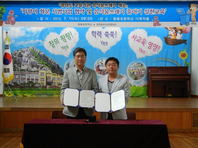 푸른충남21실천협의회와 홍성생태학교 나무는 지난 11일용봉초등학교 다목적강당에서 용봉초등학교와 '지렁이 화분 시범학교 운영을 위한 협약'를 체결하고 시범사업에 공동 협력키로 했다. <사진>