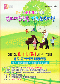 온 가족이 즐길 수 있는 고품격 클래식 콘서트가 펼쳐진다. 충남 사랑티켓과 함께하는 '필로세앙상블 가족음악여행'이 다음달 11일 오후 7시 30분 홍주문화회관 대공연장에서 열린다. 8명의 클래식 악기 연주자로 구성된 필로세앙상블은 홍성에 기반을 두고 현직 활동을 왕성하게 벌이고 있는 전문연주자들이 뭉쳐 2009년 5월 창단된 이래 왕성한 연주활동을 이어가고 있다. 필로세는 '제가 하나님을 사랑합니다'라는 뜻의 그리스어이다.