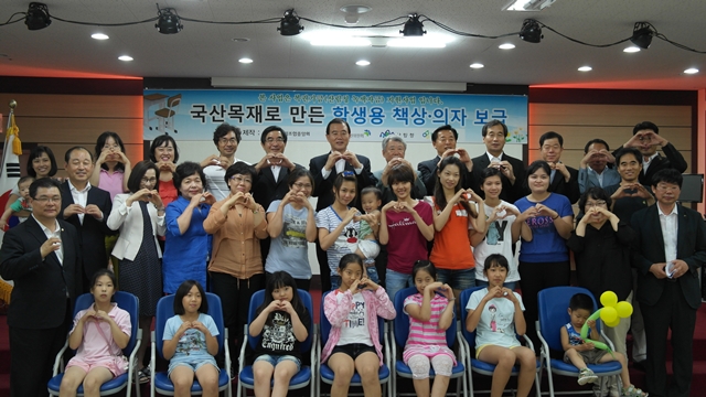 산림조합중앙회는 이번 사업을 통해 전국 99개 지역아동센터, 공부방, 사회복지시설 등에 우리나라에서 자란 낙엽송 간벌목으로 만든 2억원 상당의 책상과 의자 1800조를 기증했다. 충남지역 다문화센터 외 13개소에는 2500만원에 상당하는 책상과 의자225조를 기증했다.