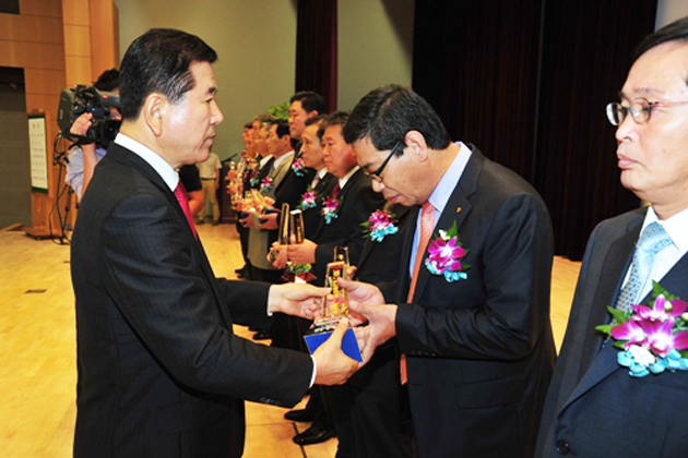 홍성축협은 지난 1일 서울 농협중앙회 본부 대강당에서 박유태 상임이사가 최원병 농협중앙회장으로부터 축산물판매달성탑을 받았다.<사진>