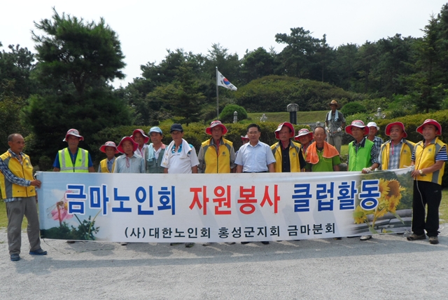 대한노인회 홍성군지회 금마면분회와 노인자원봉사클럽, 3·1독립유가족대표, 홍성군광복회 회원들은 지난 7일 광복절을 앞두고 무더위 속에 금마면 철마산 공원에서 잡초제거 등의 자원봉사활동을 펼쳤다.