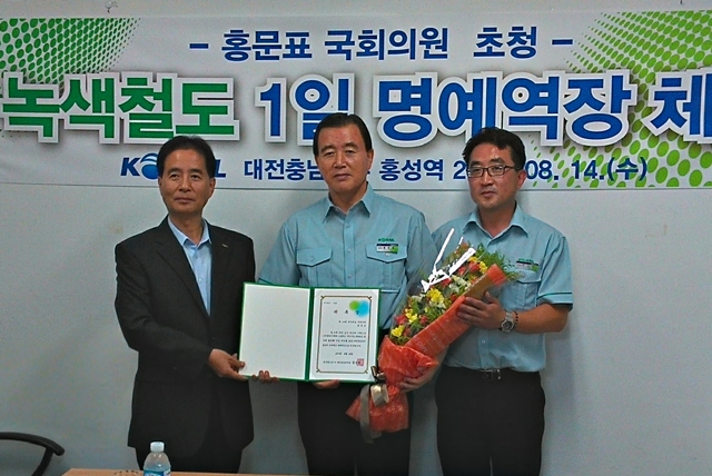 이날 행사는 명예역장으로 위촉된 홍문표 의원과 코레일 대전충남본부 김승영 본부장과 홍성관리역 관내 역장 등이 참했다.