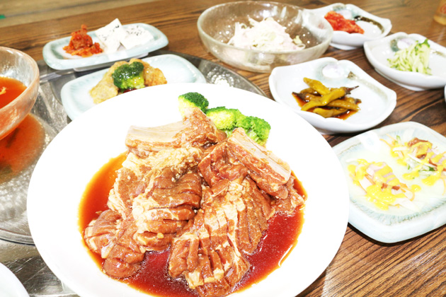 메 뉴: 돼지갈비(250g) 1만1000원, 메밀막국수 6000원