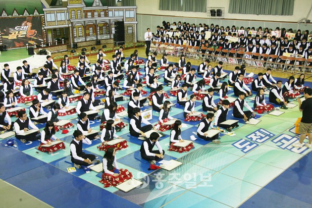 올해로 개교 40주년을 홍주고등학교에서 6일 오전 9시부터 오후 6시까지 KBS '도전! 골든벨' 촬영이 진행됐다. <사진>