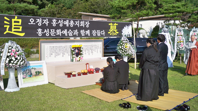앞서 고 오정자 회장의 영결식이 7일 오전 갈산면 소재 자신의 개인화실 앞에서 홍성예총 주관으로 엄숙히 거행됐다.