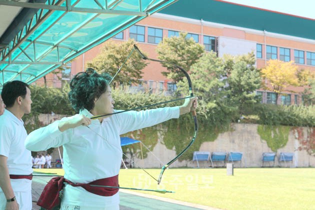 ▲ 최영장군 탄신기념 제8회 전국 남·녀 궁도대회 단체전에 참가한 한 선수가 시위를 당겨 표적을 겨누고 있다. 이번 대회는 홍종합경기장 내에 위치한 홍무정에서 25일부터 27일까지 열리며 전국에서 선수, 임원 등 1500여명이 참가해 실력을 겨루게 된다. 저작권자 © 홍주일보 무단전재 및 재배포 금지 서용덕 기자 다른기사 보기 페이스북 카카오톡 URL복사 기사공유하기