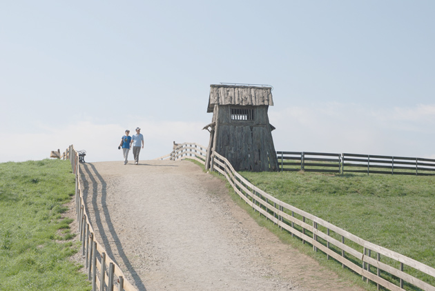 양떼목장은 걷는 속도에 따라 다르겠지만 약 40분~1시간 동안 시원하게 탁 트인 환상적인 산책로를 걸으면서 대자연 속의 아름다운 풍경에 젖어볼 수 있다. 평화로운 풍경 속으로 들어가다 보면 어느덧 일상의 잡다한 상념들은 멀리 사라지고 양들이 한가롭게 풀을 뜯는 모습을 바라보면 유럽의 알프스 어느 곳에 자신이 와 있는 듯 착각을 느낀다. 이곳은 빨리 걸을 필요가 없다. 천천히 산책로를 따라서 한바퀴 돌아 내려오면 되는데 중간에 나무로 지어진 건물들이 풍경과 잘 어울려 아름다움을 더해준다.