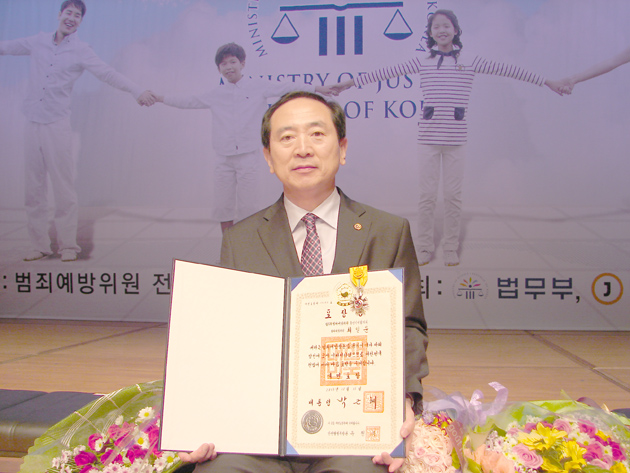 최일운 법무부범죄예방위원홍성지역협의회장(홍주신협 이사장)이 2013 범죄예방한마음대회에서 국민포장 수훈을 받았다. 홍성지역협의회는 단체표창을 수상하는 영예를 안았다. 최일운 회장은 지난 11일 과천시민회관에서 황교안 법무부장관을 비롯해 전국 범죄예방위원, 소년보호위원 등 범죄예방자원봉사자 1000여명이 참석한 가운데 열린 범죄예방한마음대회에서 11년간 학교폭력 예방 및 비행청소년 선도 등 지역사회 범죄예방활동에 헌신한 공로를 인정받아 국민포장을 수훈했다.