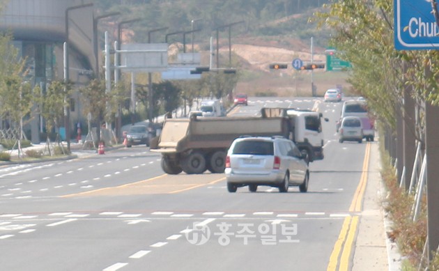실제로 대다수 공사차량들은 도로에 교통량이 뜸하다 싶으면 신호를 무시하고 질주하거나 반대편에서 자동차가 오더라도 막무가내로 유턴하고 있어 아찔한 상황이 빈번히 연출되고 있다. 최근에는 교통신호를 무시하고 달리던 공사차량과 일반 트럭이 충돌해 차량이 심하게 파손되고 운전자가 중상을 입는 등 공사차량의 안전불감증으로 인한 사고건수도 크게 늘고 있는 것으로 확인됐다. 때문에 인근 주민들과 내포신도시를 자주 오가는 주민들은 교통법규를 무시하는 공사차량들로 안전에 위협을 느낀다며 이들에 대한 대책을 호소하고 있다.