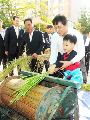 ▲ 지난 11일 천안 쌍정초등학교 교정에서 열린 도농상생을 위한 '사람과 벼, 그리고 생명나눔 한마당' 행사에서 안희정 충남지사가 학생 등과 벼 수확체험을 하고 있다. 사진=충남도 제공 저작권자 © 홍주일보 무단전재 및 재배포 금지 홍주일보 다른기사 보기 페이스북 카카오톡 URL복사 기사공유하기