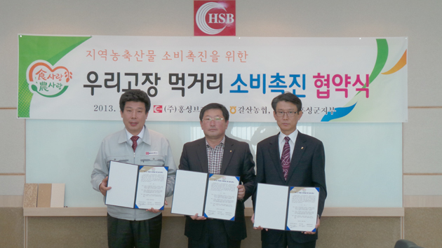 ▲ 농협홍성군지부는 지난 23일 ㈜홍성브레이크 본사 사무실에서 食사랑農사랑운동 사업의 일환으로 ㈜홍성브레이크, 갈산농협과 우리고장 먹거리 소비촉진 협약식을 가졌다. 저작권자 © 홍주일보 무단전재 및 재배포 금지 홍주일보 다른기사 보기 페이스북 카카오톡 URL복사 기사공유하기