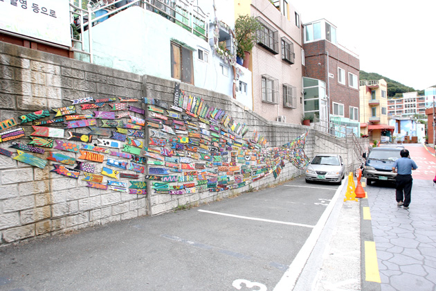 10개년을 계획하고 있는 산복도로 르네상스 프로젝트는 올해 3년차로 아직 사업의 30% 정도 밖에 진행되지 않았지만 이미 가시적인 성과를 거두고 있다. 그 중에서도 매년 18만명의 관광객이 다녀간다는 사하구 감천동 감천문화마을을 찾았다. 처음 마주한 것은 제각각의 바지를 입은 하반신의 마네킹 위에 울긋불긋한 꽃들이었다. 초가을 따스한 햇살을 받은 꽃들은 꽃받침으로 사용된 빛바랜 바지와 대비되면서 그 아름다운 빛깔을 더욱 자아내고 있었다. 그 모습을 사진에 담고 있는 순간, 한 무리의 관광객들이 마을입구로 되돌아 나오고 있었다. 가이드의 안내를 받아 감천문화마을 탐방을 마친 중국 관광객들이었다. 마을을 떠나기가 아쉬워서인지, 저마다 마을 이곳저곳 사진을 찍기에 바빴다. 마을을 한 바퀴 도는데 아무런 문제가 없을 정도로, 이동로와 마을명소에 곳곳에 대한 안내판이 설치된 것이 눈에 들어왔다. 다만 최근 부쩍 늘어난 중국 및 일본 관광객들을 위한 외국어 안내판이 추가되어야겠다는 아쉬움도 함께.