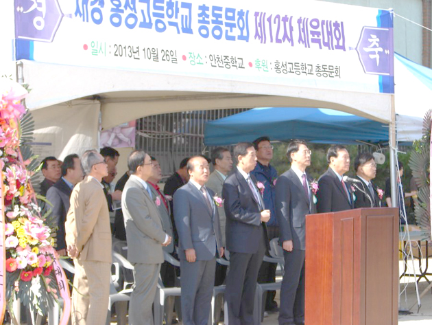 재경홍성고등학교총동문회(회장 이천수․26회) 제12차 동문체육대회가 지난 26일 서울 금천구 소재 안천중학교에서 열렸다. <사진> 이날 행사에는 조중형(24회) 홍성고총동문회장을 비롯한 김동문, 김문웅, 현상섭 역대 총동문회장, 김용해, 박동일, 권중배 역대 재경회장과 지역동문회장, 홍일표(28회) 국회의원, 최홍이(15회) 서울시교육위원장, 서종완 홍성고 교장(26회) 등 1500여명 동문들이 참석해 성황을 이뤘다.참석한 동문들은 기수별로 배구, 농구, 골프어프로치 등의 운동경기를 진행하면서 화합과 친목을 다지는 시간을 가졌다.