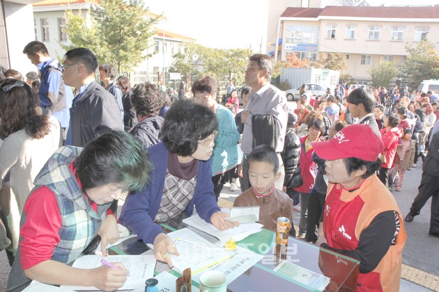 지난 30일 홍성군보건소를 비롯해 관내 보건지소에서 일제히 유료 인플루엔자 예방접종이 실시된 가운데 예년보다 짧은 접종기간으로 북새통을 이뤘다. 이날 홍성군보건소 내 주차장 부스에는 독감예방 주사를 맞기 위해 접수하려는 사람들로 인산인해를 이루었다.