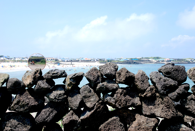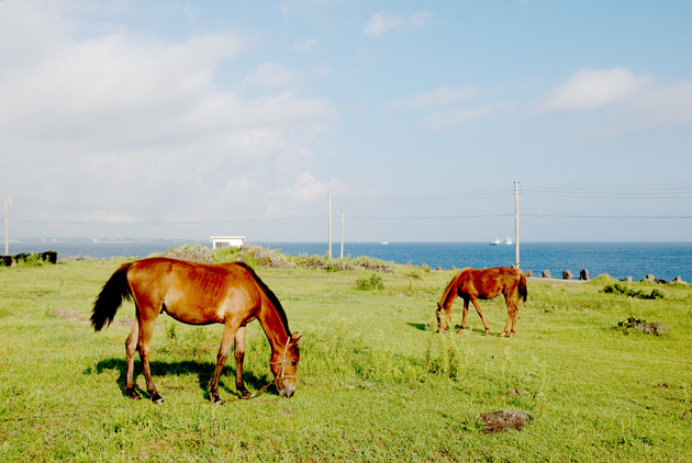 여행을 하다보면 한 무리의 자전거 부대들이 몰려오는데 페달을 밟으면서 달리는 모습이 시원해 보인다. 가끔 스쿠터를 탄 사람들도 나타났다 시야에서 사라지는데 그 순간에 만나는 바다는 참 아름답다. 바다는 역시 제주도 바다이다. 잠시 달리다 멈춘 곳은 방사탑을 본 후였다. 제주도의 방사탑은 1995년 제주민속자료 제8호로 지정되었고 우도면에는 13개소의 방사탑이 세워져 있다. 마을 어느 한 방위에 불길한 징조가 비치거나 풍수지리설에 따라 기운이 허하다고 믿는 곳에 액운을 막으려고 세운 돌탑이다.마을길을 따라서 걷는 기분이 참 좋다. 여름에 쌓은 돌담을 건너면 깨가 초록빛으로 빛나고 있고 하얀 꽃까지 피우고 있어 더 아름답게 해준다. 봄에는 유채꽃 행렬이 돌담과 바다와 어우러져 환상적인 분위기를 자아낸다. 제주도 우도의 지붕은 함석지붕이 많다. 파란색, 초록색, 붉은색으로 칠한 지붕이 주위 풍경과 어우러져 무척 아름답다. 다시 걸으면서 바다를 즐기고 돌담을 즐기면 더 행복해진다. 비양도 등대를 만나고 검멀레 해수욕장에서 우도 바다를 만난 후에 우도봉을 향해서 걸어간다. 우도봉에 오르는 길은 이국적인 정서가 가득하고 입구에는 승마체험장이 있다. 연인들이 손을 잡고 오르는 길에는 파란 냄새가 났다.