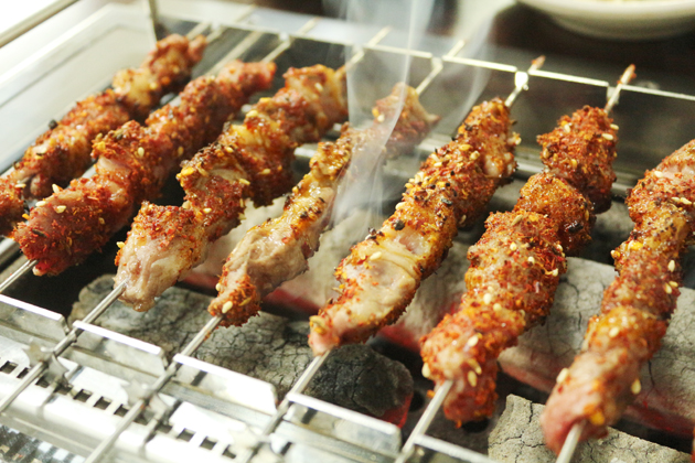 양고기 특유의 향이나 질긴 식감을 우려할 수 있지만 특제가루에 들어간 향신료 덕분에 잡내 없이 고소한 양꼬치를 즐길 수 있다. 꼬치 사이사이에 양고기만이 아니라 양곱창도 같이 넣어서 더 고소한 맛을 느낄 수 있다. 또한 꽂기만 하면 자동으로 돌아가 양꼬치를 골고루 익혀주는 기계가 테이블마다 설치되어 있어 일일이 뒤집을 필요 없이 쉽고 편하게 양고기를 즐길 수 있다.양꼬치 외에도 양갈비와 옥수수 국수, 한국식으로 변형된 중국식 탕수육 꿔바로우와 마파두부 등도 맛 볼 수 있다. 다만 메뉴에는 옥수수 국수는 온면으로 꿔바로우는 탕수육으로 표기돼 있다. 김 대표는 "향 때문에 거부감을 갖는 분도 있지만 쯔란과 함께 양꼬치를 먹으면 더 맛있게 먹을 수 있다"며 "조금만 넣어도 달라진 맛을 느낄 수 있을 것"이라고 말했다.