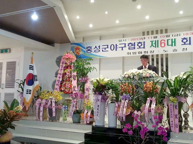 홍성군야구협회는 지난 15일 마온월드에서 노승천 제6대 홍성군야구협회 회장 취임식을 개최했다. 이날 취임식에서는 김석환 홍성군수를 비롯한 내외빈, 체육계 인사 등이 대거 참석해 성황을 이뤘다. 노 회장은 "그동안 재정적이나 환경적으로 열악한 환경 속에서도 서해안리그 2, 3부에서 우승을 하는 등 우수한 성적을 거둬온 야구인들이 즐겁게 야구를 할 수 있게 재정확보와 야구장 건설 등을 위해 적극 노력할 것"이라며 "앞으로 지역의 야구 발전과 주민들의 화합에 기여하는 야구협회가 되겠다"고 포부를 밝혔다.