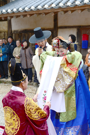 이날 혼례의 주인공은 신호수(37·홍성읍) 씨와 페리(24·필리핀 출신) 씨 부부다. 신씨는 "전통혼례식을 준비해 주신 모든 분들께 감사하다"며 "앞으로 더 행복한 가정을 꾸려 나가겠다"는 소감을 밝혔다.