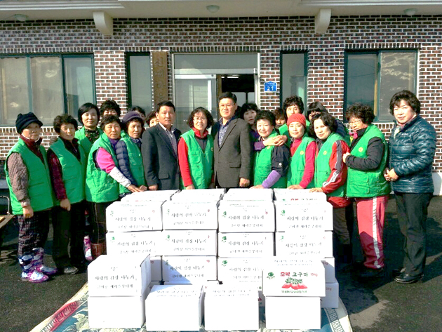 ▲ 금마면 새마을 부녀회 회원 20여명은 지난 25일과 26일 양일간 직접 재배한 배추 400여 포기로 김장담그기 행사를 벌여 관내 독거노인과 장애인 가정 등 55가구에 전달했다. 저작권자 © 홍주일보 무단전재 및 재배포 금지 홍주일보 다른기사 보기 페이스북 카카오톡 URL복사 기사공유하기