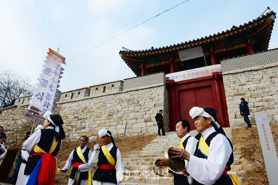 남문은 지난 8월 상량식을 가진데 이어 각계 의견을 수렴해 남문의 명칭을 ‘홍화문’으로 최종 결정한 바 있다. 홍화문 현판은 서예가 장강 변수길 선생의 글씨와 한국서각협회 충남도지회 김종일 지회장의 각자로 제작됐다.
