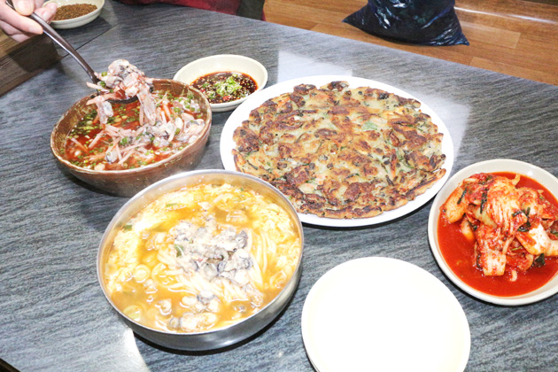 면을 먹으면 소화가 안돼 기피하는 사람들도 이곳의 칼국수는 먹기 좋다. 식품첨가제 없이 오직 소금만을 넣고 만든 면을 사용해 속을 편하게 한다. 칼국수집이지만 겨울이면 굴전과 굴물회를 빼놓으면 섭섭하다. 굴은 매일 산지에서 공수해 오기 때문에 신선할 뿐만 아니라 제철을 만나 뽀얗고 통통하게 살이 올라 바다의 향을 가득 머금고 있다. 고소한 향기로 유혹하는 굴전은 굴과 우렁이 가득하고 양도 푸짐해 칼국수만으로는 왠지 아쉬운 입맛을 즐겁게 한다.