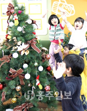 ▲ 12월에 접어들면서 관내 거리 곳곳에도 다가온 크리스마스를 알리는 트리와 오색전구들이 장식되는 등 연말 분위기가 물씬 풍기고 있다. 사진은 지난 4일 충남도청어린이집 원아들이 크리스마스 트리를 장식한 후 "메리 크리스마스"를 외치고 있는 모습. 김혜동 기자 저작권자 © 홍주일보 무단전재 및 재배포 금지 홍주일보 다른기사 보기 페이스북 카카오톡 URL복사 기사공유하기