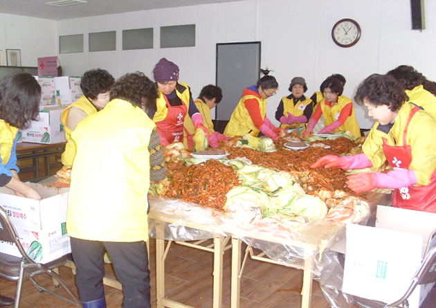 ▲ 대한적십자사홍성읍봉사회는 지난 3일 대한적십자사 봉사관에서 관내 독거노인과 어려운 가정을 돕기 위한 '사랑의 김장김치 담그기' 행사를 갖고 300여포기의 김장김치를 담가 전달했다. 저작권자 © 홍주일보 무단전재 및 재배포 금지 홍주일보 다른기사 보기 페이스북 카카오톡 URL복사 기사공유하기