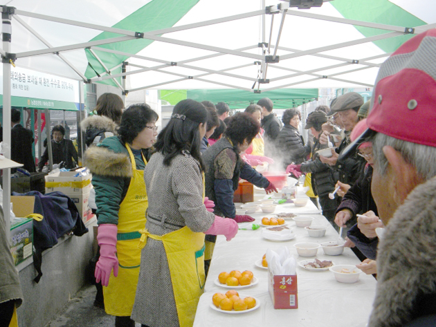 농협홍성군지부와 관내 지역농협, 홍성군농가주부모임(회장 한무홍) 회원들은 동지를 앞둔 지난 20일 농협군지부 앞에서 팥죽 나눔 행사를 가졌다.<사진> 이날 회원들은 추운 겨울을 나는 지역의 독거노인 및 소외계층과 이웃들에게 팥죽과 팥시루떡, 과일 등을 나누며 어려운 이웃들이 따뜻한 겨울을 지낼 수 있게 온기를 담은 손길을 건넸다.