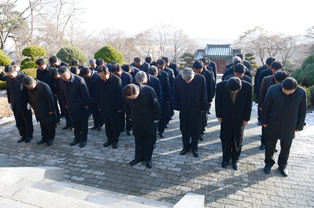 ▲ 갑오년 새해 첫날인 1월 1일 오전 10시 김석환 군수를 비롯한 홍성군청 실․과장들이 홍성읍 소재 충령사를 찾아 호국영령들에게 참배하며 충남도청 소재지로서의 성공시대를 기원했다. 사진은 참석자들이 헌화 후 묵념을 하고 있는 모습. 사진=홍성군제공 저작권자 © 홍주일보 무단전재 및 재배포 금지 홍주일보 다른기사 보기 페이스북 카카오톡 URL복사 기사공유하기