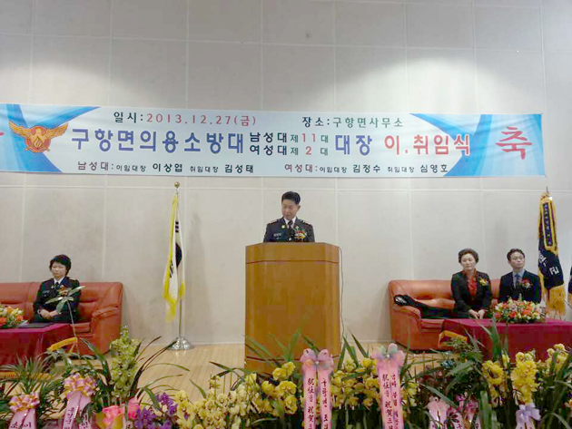 이날 취임한 김성태 대장은 2002년 구항면의용소방대에 입대해 총무부장을, 심영호 여성대장은 지난 2007년 입대해 부대장을 역임했다. 취임 대장들은 “지역의 어려운 이웃을 위한 봉사활동은 물론 화재로부터 주민의 생명과 재산을 지키기 위한 예방활동 등에 헌신하겠다”고 밝혔다.