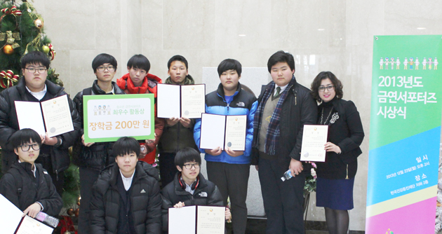 홍주중학교는 지난달 27일 금연서포터즈 ‘홍주금연오름길’이 보건복지부 ‘2013 금연서포터즈 청소년 부문’에서 최우수상<사진> 을 수상해 200만원의 장학금을 받았다고 밝혔다.