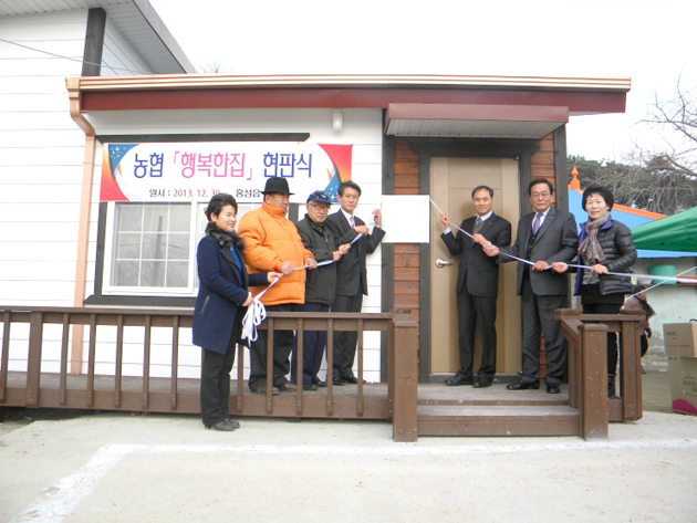 (재)농협재단과 농협군지부, 홍성농협은 지난달 30일 홍성읍 대교리 박관배(46) 씨 가정에서 ‘행복한 집’ 입주식을 가졌다. 농협재단이 실시하는 ‘행복한 집’ 사업은 주거환경이 열악한 농촌 저소득 가정을 대상으로 기존 주택의 철거와 신축, 인·허가에 필요한 모든 사항을 지원하는 사업이다.