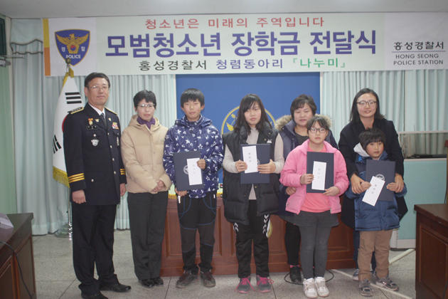 ▲ 홍성경찰서 청렴동아리‘나누미’는 지난달 30일 경찰서 소회의실에서 ‘모범청소년 장학금 수여식’을 갖고 주수궁(홍동초․6년) 학생 등 모범청소년 4명에게 각각 장학금 20만원과 상장을 수여했다. 저작권자 © 홍주일보 무단전재 및 재배포 금지 홍주일보 다른기사 보기 페이스북 카카오톡 URL복사 기사공유하기