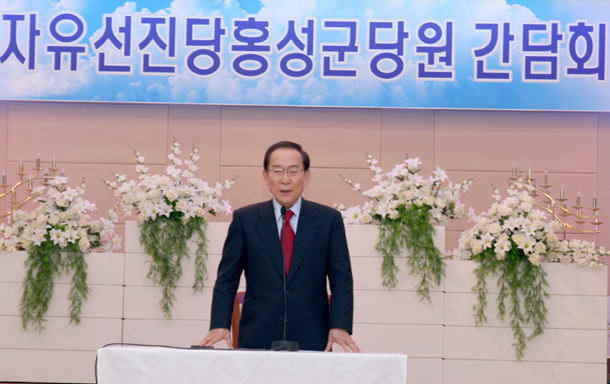 지난 21일 홍성군을 찾은 이 총재는 향군회관에서 총선 예비후보자들과 당원들이 참석한 가운데 당원 간담회를 갖고 홍성군에서 자유선진당에 대한 적극 지지를 당부 했다.