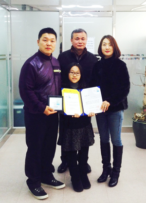 ▲ 2013 책읽는 가족으로 선정된 김진규 씨 가족이 인증서를 받고 기념촬영을 하고 있다.