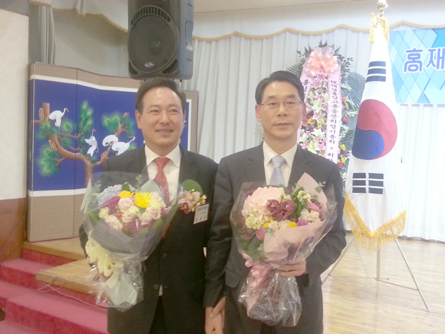 제12대 이천수 회장(26회·사진 오른쪽)이 이임하고 제13대 복봉규 회장(27회·사진 왼쪽)이 취임했다.