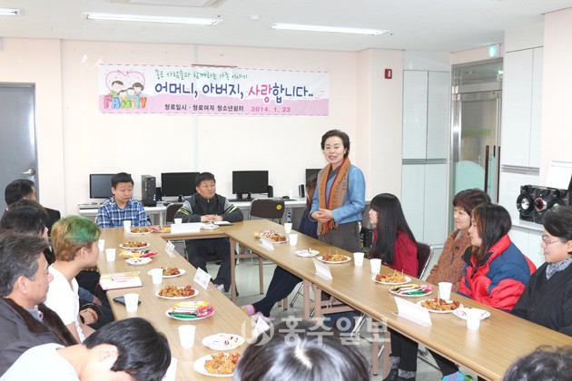 가정불화 등의 문제로 집을 떠나 청소년쉼터에 머무르고 있는 위기 청소년들에게 새로운 부모가 생겼다. 청로청소년쉼터는 지난달 24일 청소년쉼터 3층에서 남학생 5명, 여학생 4명 등 쉼터 청소년 9명을 대상으로 ‘좋은 부모 맺어주기’ 행사를 가졌다.