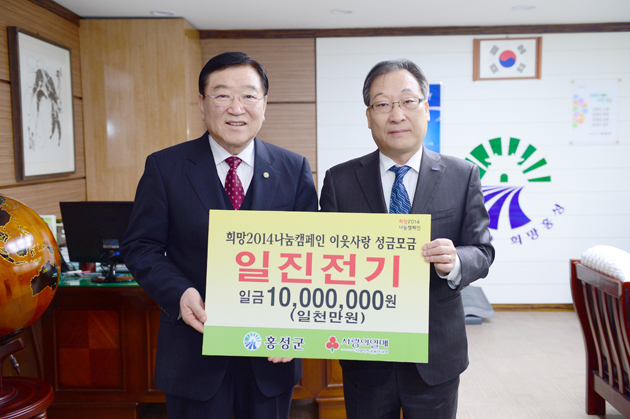 ▲ 지난 14일 일진전기 김희수 부사장이 홍성군수실을 방문해 관내 불우한 이웃을 위해 써달라며 이웃사랑 성금 1000만원을 기탁했다. 저작권자 © 홍주일보 무단전재 및 재배포 금지 홍주일보 다른기사 보기 페이스북 카카오톡 URL복사 기사공유하기