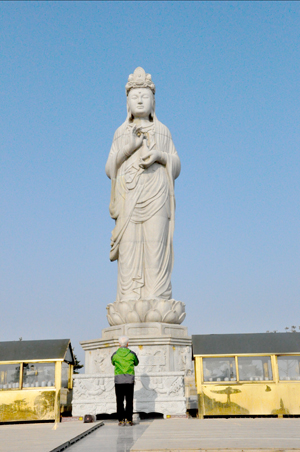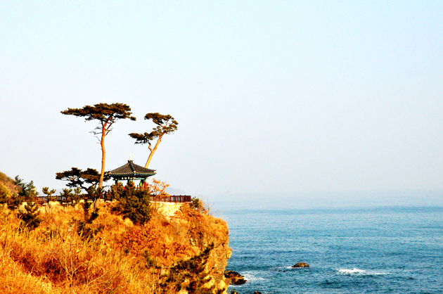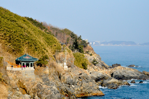 잠시 언덕 위로 올라가면 해수 관음상을 만나게 되는데 높이 서서 동해를 바라보는 모습이 시원하다. 이곳에서 내려다보이는 바다와 해수욕장의 풍경이 참 아름답다. 이곳을 돌아 본 다음에 천천히 원통보전으로 향하는 길에 상처를 가진 숲에 소나무가 많이 자라 향기를 내어주고 있다.