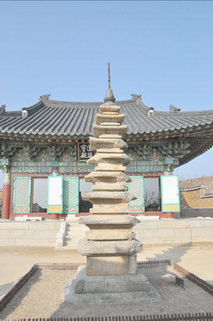 천천히 걸어서 원통보전에 닿으면 아름다운 모습에 입을 다물지 못한다. 원통보전 바로 앞에는 보물 499호인 7층 석탑이 있는데 탑돌이 하는 여행자의 모습이 아름답다.