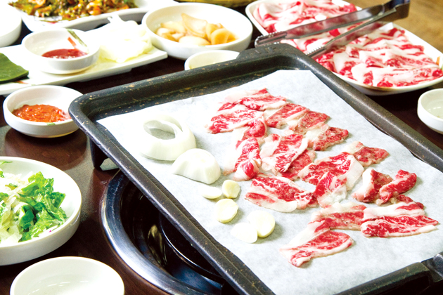 이 집에서 한우삼겹을 맛볼 수 있는 메뉴는 특수부위모듬과 쇠고기모듬로스다. 특히 쇠고기모듬로스는 300g에 1만5000원이라 돼지 삼겹살보다 저렴하다.
