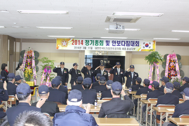 ▲ 대한민국 6․25참전유공자회 세종․충청남도지부(지부장 윤한균)는 지난 11일 홍성농협 대강당에서 6․25 참전유공자 80여명이 참석한 가운데 안보다짐 결의대회를 가졌다. 저작권자 © 홍주일보 무단전재 및 재배포 금지 홍주일보 다른기사 보기 페이스북 카카오톡 URL복사 기사공유하기