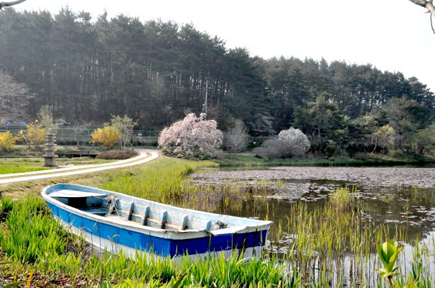 민병갈 원장이 한국적인 것을 좋아했다고 생각되는 것은 몇 군데 석탑에서 찾을 수 있었다. 그리고 들어가면서 만나는 작은 연못에는 작은 배 한척이 있어 풍경을 업로드시킨다. 이곳에서는 때만 맞으면 물안개를 만날 수도 있어 환상적인 분위기를 만들어준다. 민병갈 설립자는 개구리를 좋아했다고 한다. 일과를 마친 후 숙소로 가기 전에 개구리 소리에 그 자리를 뜨지 않았다고 한다.