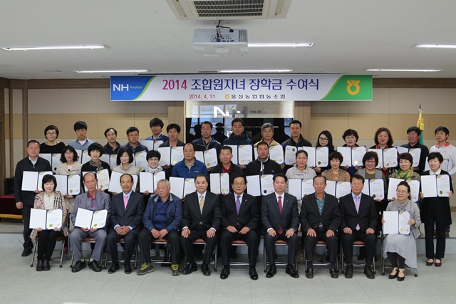 홍성농협은 지난 11일 농협 3층 회의실에서 ‘2014년 조합원자녀 장학금’ 수여식을 가졌다. 이날 홍성농협은 우수조합원 대학생 자녀 34명에게 1인당 100만원씩 모두 3400만원의 장학금을 전달했다.